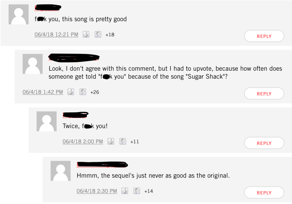 “Surf City” and “Fingertips” single covers and screenshot of discussion on “Sugar Shack” from Stereogum